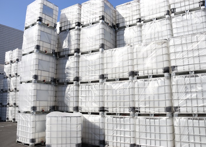 中型散装容器,符合 UN 危险品包装要求/ 灌装口公称直径 DN150, TPE 密封圈,2 英寸密封内盖附有排气装置/连体式球 阀,三元乙丙橡胶封圈钢制 框架式托盘。